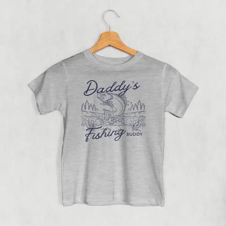 For the tiniest fishing sidekick, this “Daddy’s Fishing Buddy” toddler tee reels in all the cuteness. With a soft heather grey feel and playful blue fish graphic, it’s made for matching moments with Dad—whether on the boat, dock, or just splashing around the cabin.