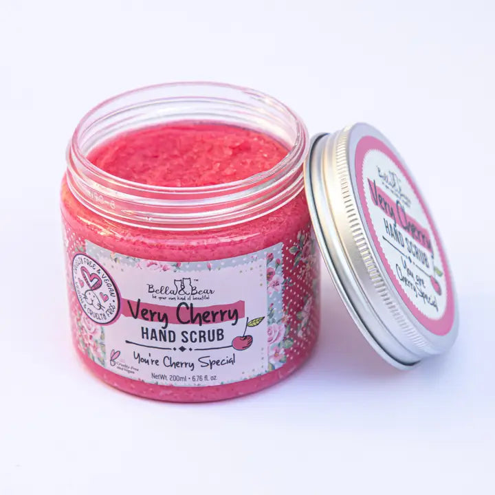 Wave goodbye to rough hands and hello to silky-smooth softness with the Very Cherry Hand Scrub by Bella and Bear. Packed with sugar crystals for gentle exfoliation and skin-loving hydration, this scrub leaves your hands refreshed, radiant, and smelling like fresh-picked cherries. Perfect for hardworking hands—or anywhere you need a little extra love!