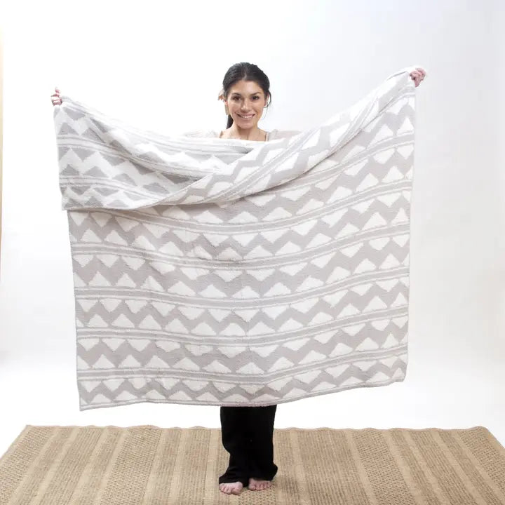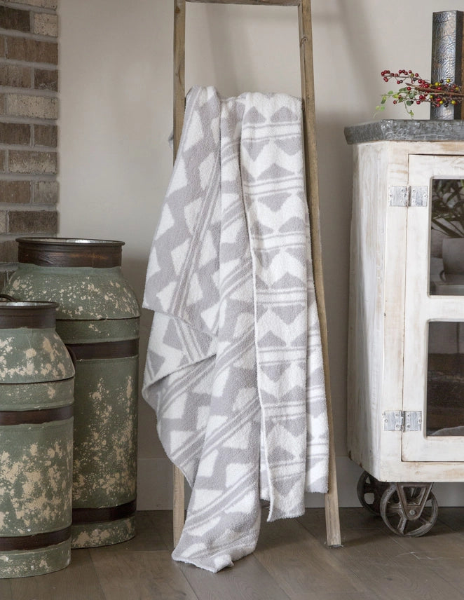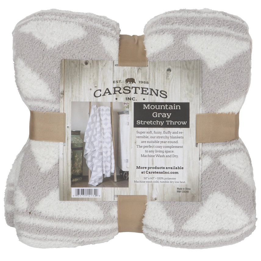 Add cozy charm to your home with the Mountain Grey Stretchy Throw Blanket by Carstens. Designed for year-round comfort, this reversible blanket features two colors for versatile styling and a fluffy, fuzzy texture that’s irresistibly soft. Crafted from easy-care fabric that resists shrinking, pilling, and wrinkling, it’s perfect for everyday use while maintaining its fresh look and feel. At 50" x 60", it’s just the right size for curling up on the couch, layering on the bed, or adding a decorative touch to any space.