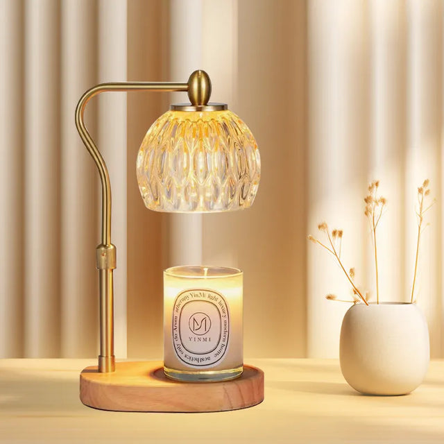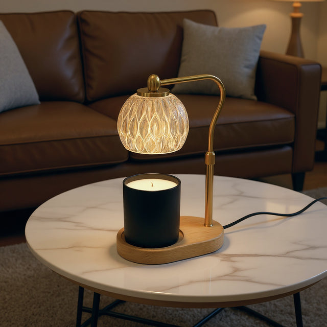 Candle Warmer Lamp in Crystal Gold on marble coffee table Candle Warmer Lamp in Crystal Gold on marble coffee table