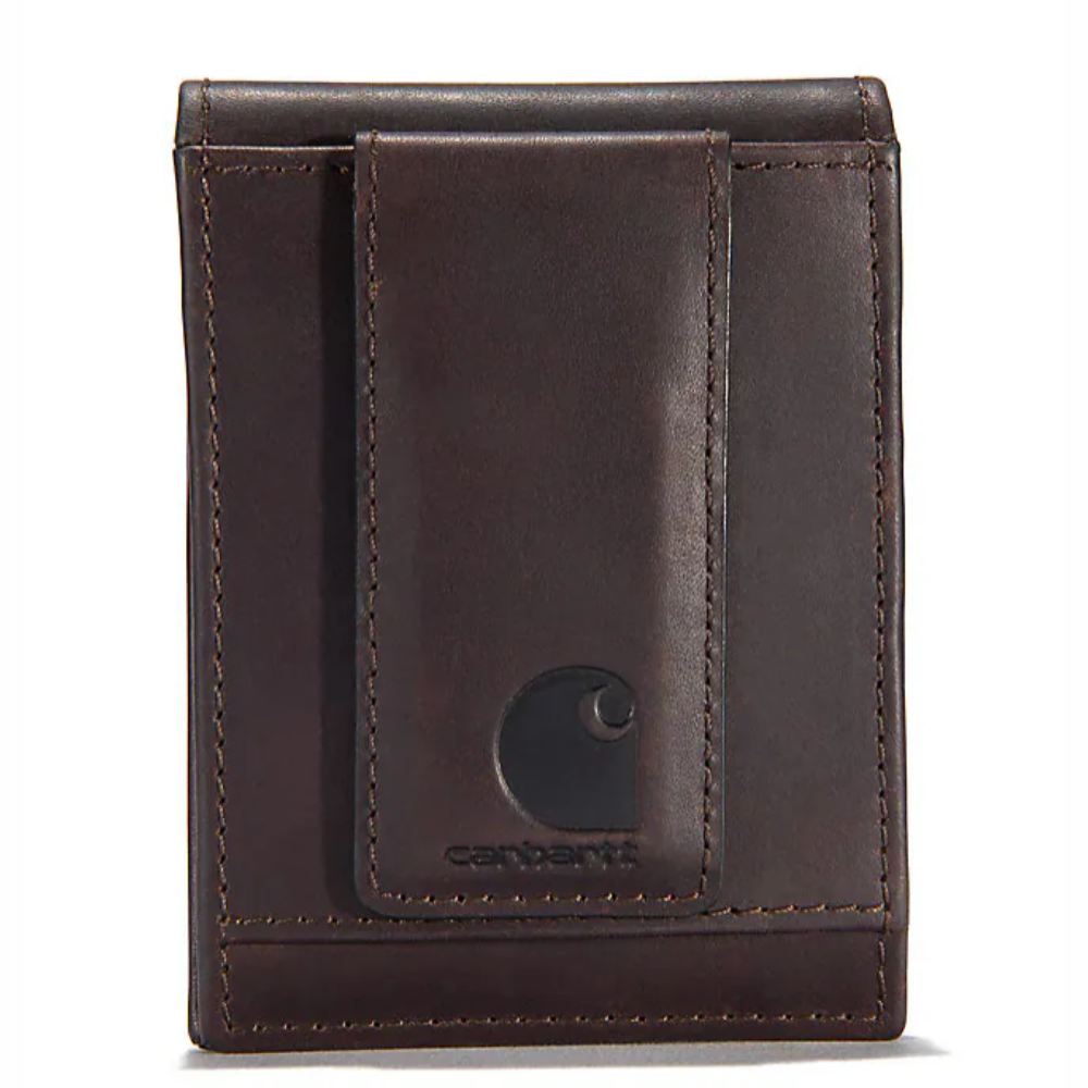 Sleek and durable, this Carhartt men’s front pocket wallet is crafted from full-grain, oil-finished leather with a rich shine. A slim, old-school design with modern function, it features a magnetic money clip and embossed Carhartt logo.