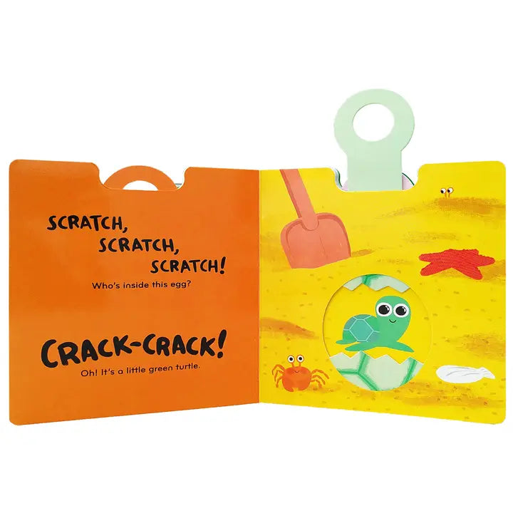 Perfect for Easter and springtime, Crack-Crack! Who Is That? from Chronicle Books is an interactive board book that delights little ones with surprises on every page. Each egg hides a baby animal waiting to hatch—just pull the handle to reveal the adorable surprise and enjoy the playful “crack-crack-crack” sound effect.