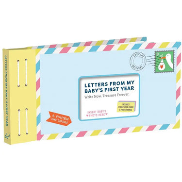 Features: 12 guided letters, photo keepsake frame, milestone cards, sealing stickers