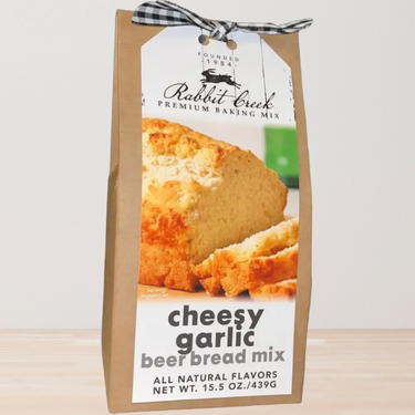 If you love garlic and cheese, this Cheesy Garlic Beer Bread Mix is sure to be a favorite. Packed with bold garlic flavor, savory Parmesan and Romano cheeses, and a hint of onion and red bell pepper, this easy-to-make bread bakes into a golden loaf with a soft, cheesy interior and buttery crust. Simply add a 12 oz. can of beer (or substitute with ginger ale or club soda), stir, bake, and enjoy a homemade bread that pairs with just about anything.