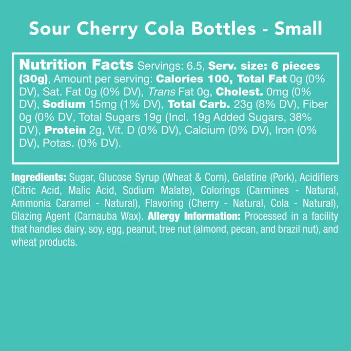 Take a nostalgic sip in candy form with Candy Club Sour Cherry Cola Bottles. These soda pop-shaped gummies are dusted in “fizzy” sour sugar and pack the perfect punch of sweet cherry cola flavor. A fun twist on a classic favorite, they’re bold, bubbly, and oh-so-addictive.