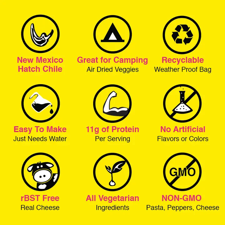 Easy to prepare and packaged in a recyclable, weather-resistant pouch, it’s perfect for camping, skiing, backpacking, or a quick weeknight meal. Just boil with water, stir in the cheese and spice mix, and enjoy warm, flavorful comfort food anywhere adventure takes you.