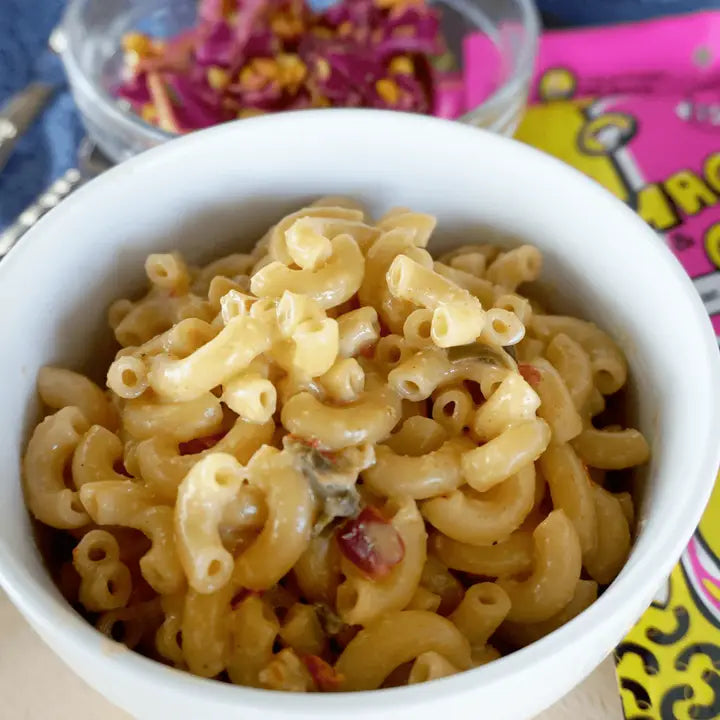 Enjoy the taste of the Southwest with FishSki’s Hatch Red Chile, Garlic & Cheddar Macaroni and Cheese. This savory dish features New Mexico’s famous Hatch Red Chile, known for its mild heat, earthy sweetness, and rich flavor. Blended with sharp cheddar and garlic, it delivers a smooth, comforting taste of the mountain Southwest in every bite.
