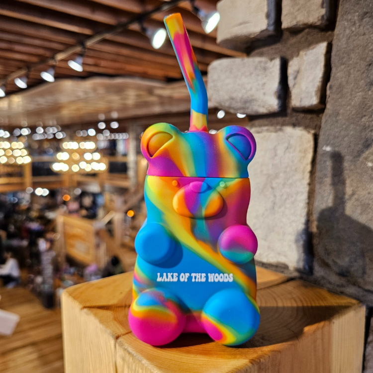 Lake of the Woods Gummy Bear Silicone Water Bottle – Groovy Rainbow with Straw