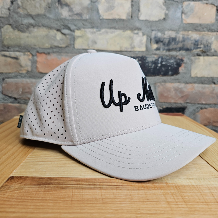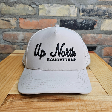 Elevate your hat game with this lightweight, breathable cap that’s as versatile as it is refined. Embroidered with “Up North” and “Baudette” in crisp black thread, this sleek stone-colored snapback is perfect for golf rounds, boat rides, or just repping Northern Minnesota in style.