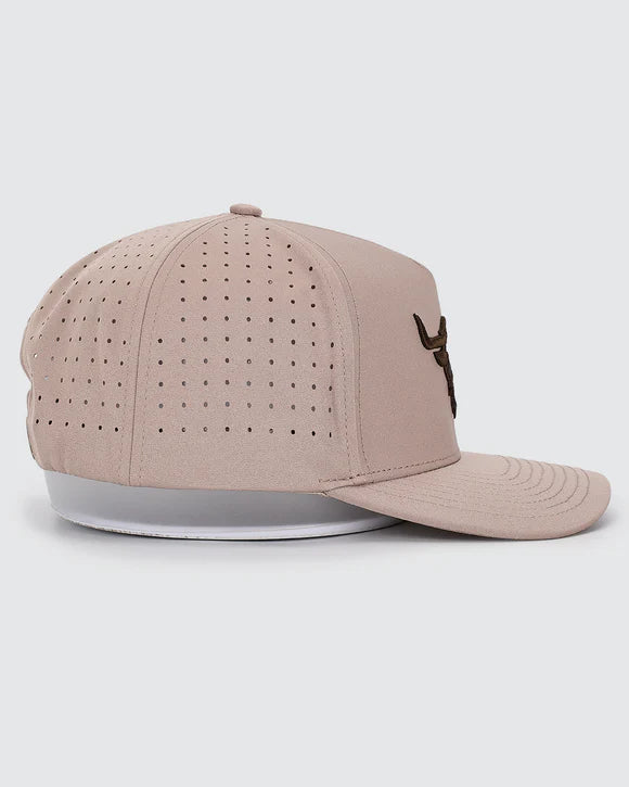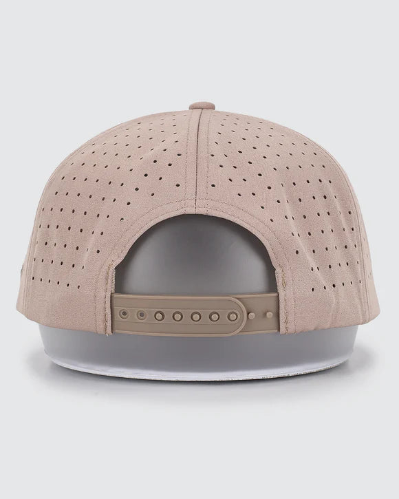 Crafted with a polyester-spandex blend and perforated back panels, this mid-profile snapback delivers comfort, airflow, and durability for long days outdoors.