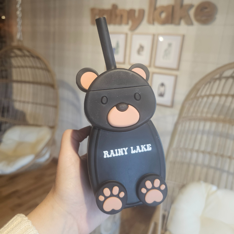 Rainy Lake Bear-Shaped Silicone Water Bottle with Straw