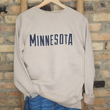 A classic never goes out of style—and this cozy crew is proof. With bold navy appliqué letters spelling out Minnesota across the chest, it has that timeless collegiate vibe we all love. The oat heather color keeps it neutral, soft, and easy to pair with anything, whether you're cheering from the sidelines, exploring the North Shore, or lounging at the cabin.