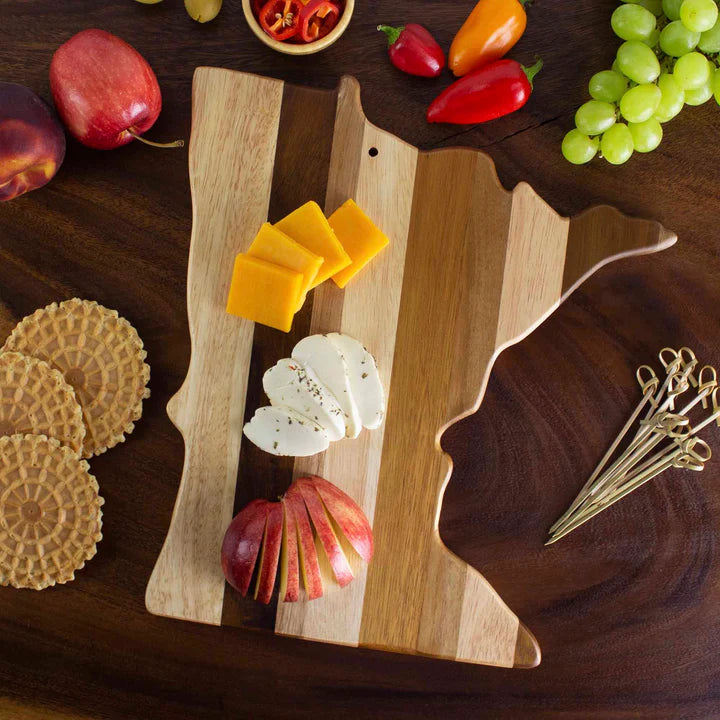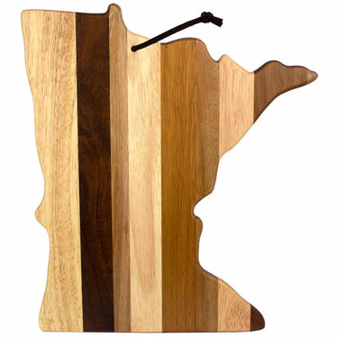 Celebrate the Land of 10,000 Lakes in style. Crafted in the distinctive shape of Minnesota, this cutting board is part of our Shiplap Series, featuring multi-toned wood planks that create a rustic, shiplap-inspired design. Whether you're prepping veggies, slicing up snacks, or serving charcuterie, this board brings both function and flair to your kitchen.