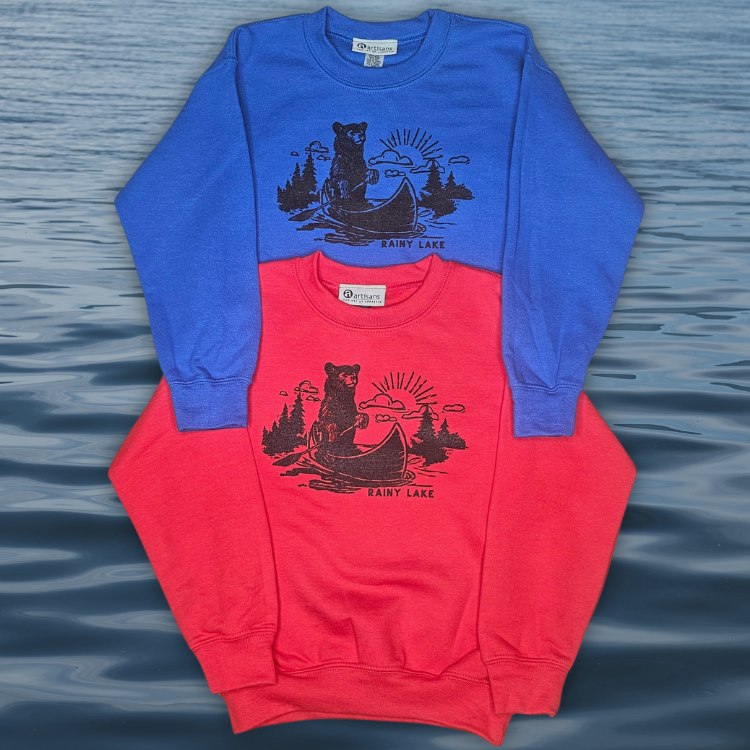 Rainy Lake Kids Canoe Bear Crewneck Sweatshirt - 2 Colors!