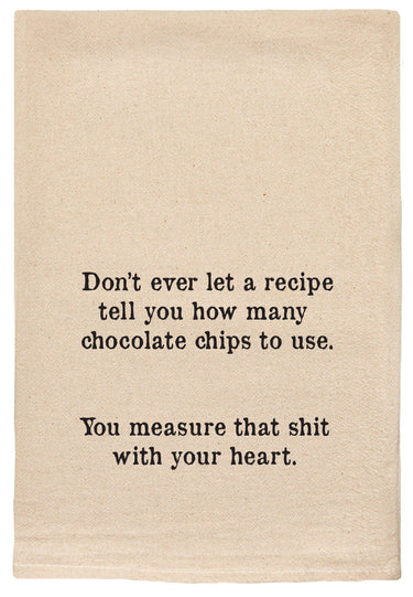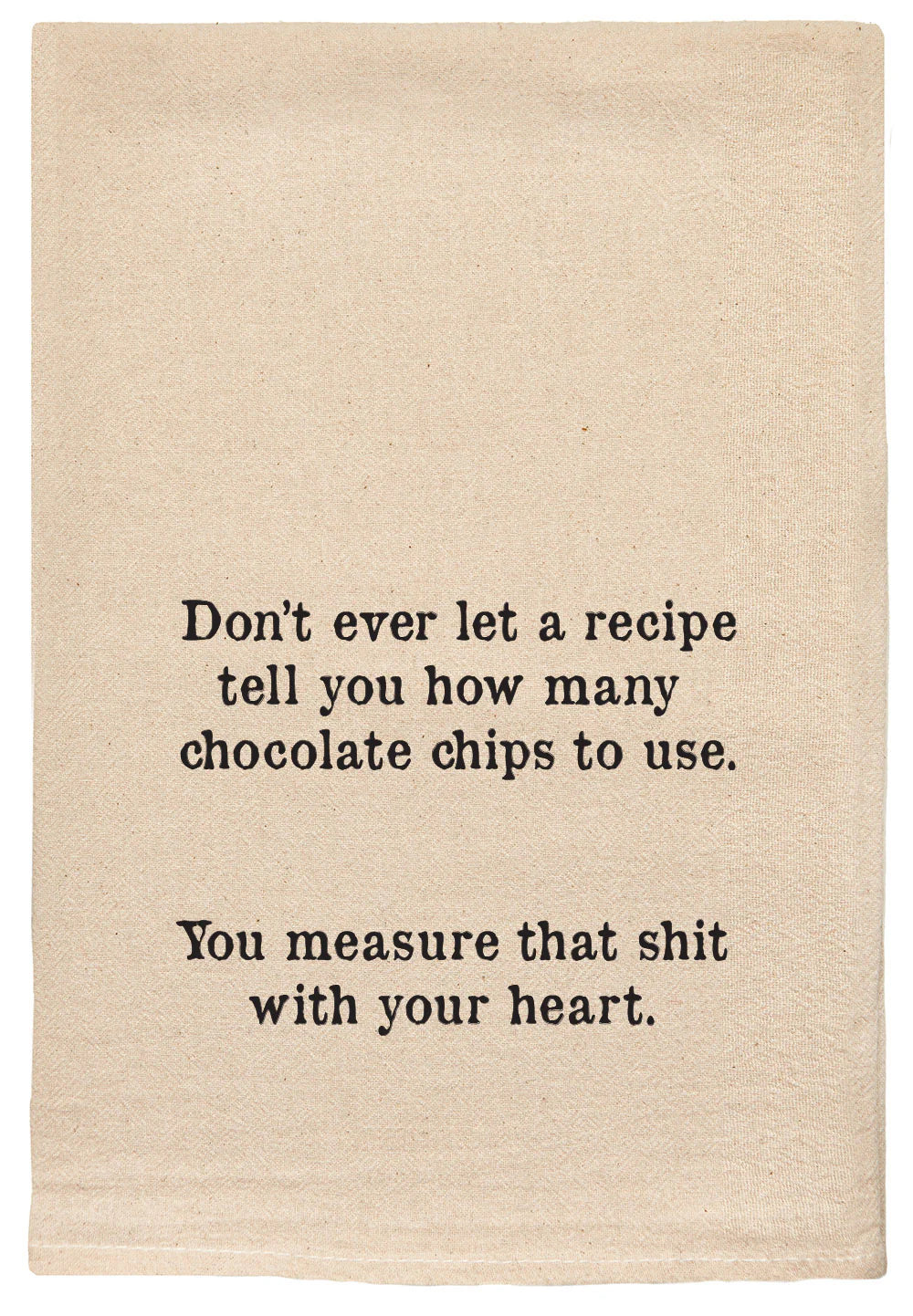 Measure That Sh*t With Your Heart. Recipes are suggestions. Chocolate chips are a calling. This cheeky towel is for the bakers who know that love (and chocolate) should never be limited by a measuring cup.