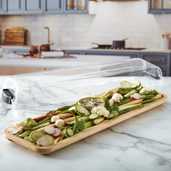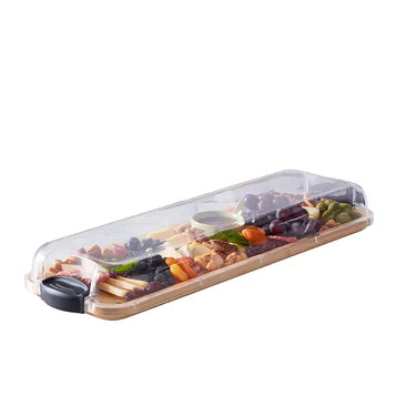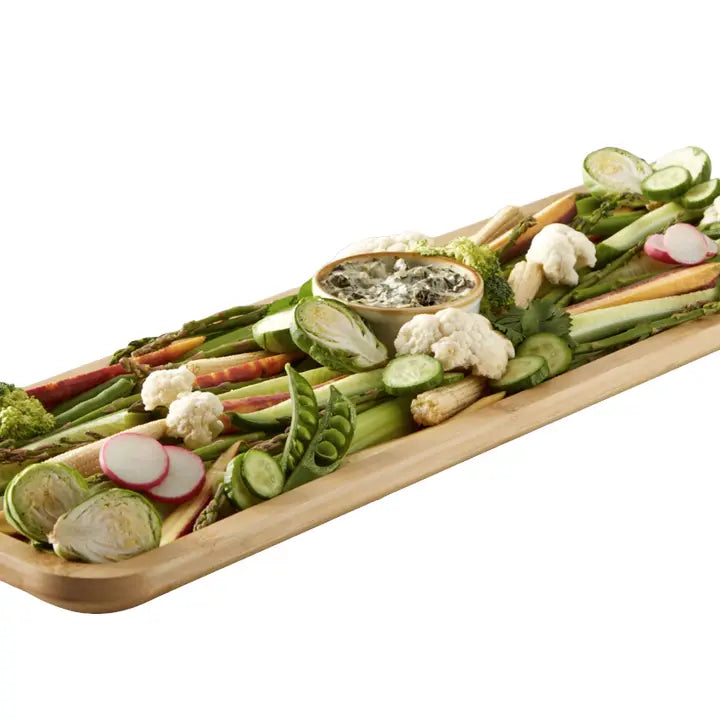 Make it. Take it. Enjoy it. This sleek rectangular bamboo board from Farberware’s “Build a Board” collection is perfect for charcuterie on the go. Measuring 7x22 inches, it provides ample space for grazing boards, appetizers, and creative food displays. The clear locking lid ensures everything stays fresh and secure during travel—ideal for picnics, parties, or gifting. Its dual-sided design makes it equally suited for food prep and stylish presentation.