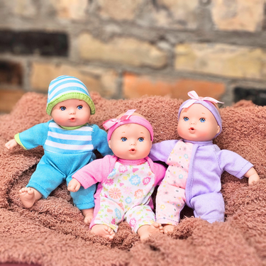 Perfect for tiny hands and big imaginations, the Madame Alexander Little Cuties baby doll is a cuddly 8-inch companion ready for on-the-go play. With a soft cloth body, molded vinyl head and limbs, and sweet painted features, each doll wears a cozy sleeper and headband or hat.