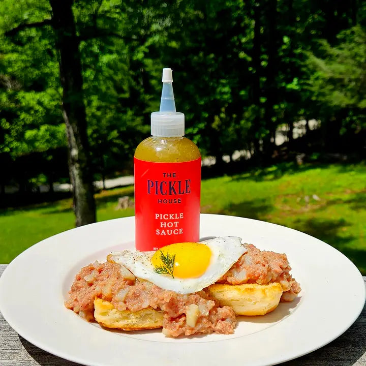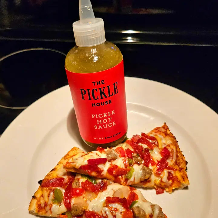 Turn up the heat with this Pickle Hot Sauce, crafted with fresh chopped dill, garlic, and our national award-winning pickle brine. Balanced with a secret spice blend, this sauce brings tangy pickle zest with just the right amount of kick. Perfect for spicing up everyday meals and adding a bold twist to your favorite dishes.