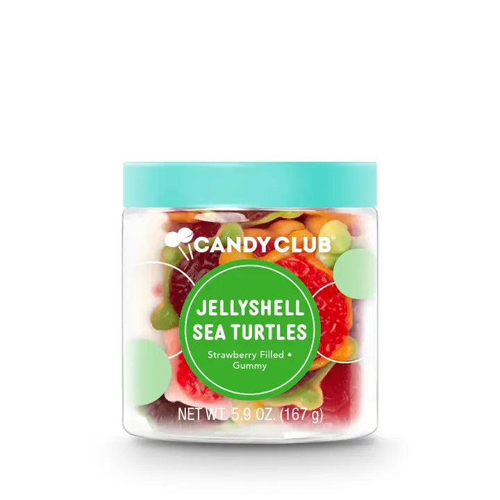 Take a sweet plunge with Candy Club Jellyshell Sea Turtles—adorable gummies filled with a strawberry jelly surprise. Each chewy turtle blends fruity flavor with a gooey center for a wave of delicious fun. Perfect for ocean lovers, mermaid parties, or anyone who enjoys a whimsical candy adventure. Gluten-Free.