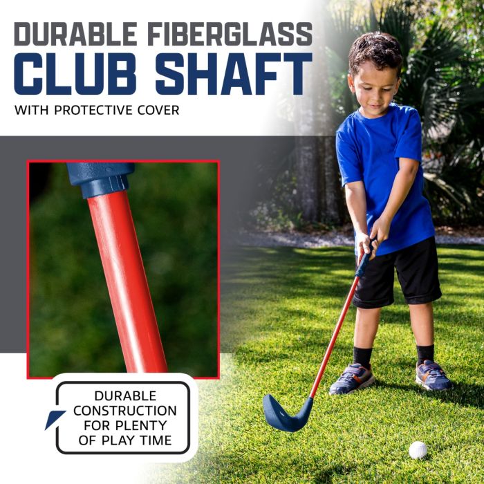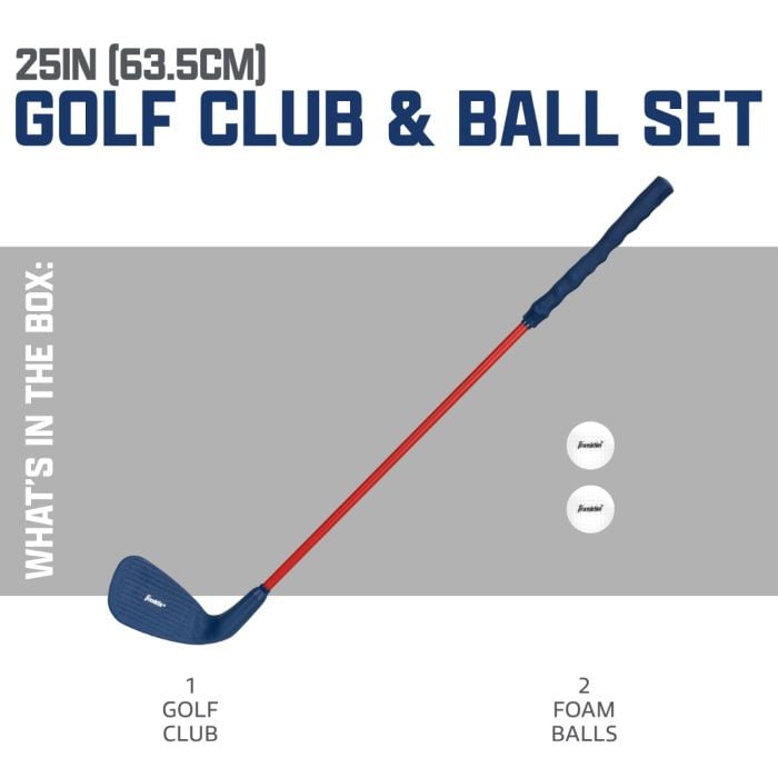Introduce kids to the fun of golf with the Franklin Sports Kids Toy Golf Club Set! The 28" plastic iron-style club has an oversized head for easier contact, and the ergonomic grip helps teach proper hand placement. Two lightweight foam balls are included, making it safe for both indoor and outdoor play. A great way for kids to build confidence, coordination, and enjoy hours of active fun. Recommended for ages 3 and up.
