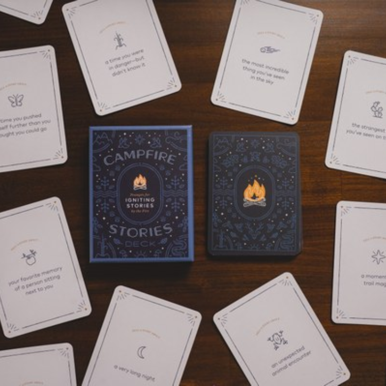 Share meaningful memories and spark real connection with the Campfire Stories Deck—a set of 50 storytelling prompt cards designed to inspire reflection, laughter, and conversation. Perfect for older kids, teens, and adults, these cards bring people together around a campfire, dinner table, or anywhere stories are shared.