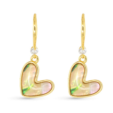 These gold abalone heart drop earrings showcase the natural beauty of abalone with a shimmering finish. A bold and colorful accessory that brings coastal charm to any outfit.