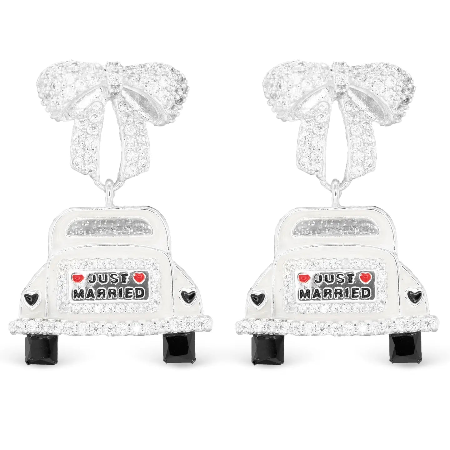 Celebrate love with these Silver CZ Just Married Earrings, featuring romantic motifs and dazzling stones. A perfect pick for brides, bachelorette parties and newlyweds!