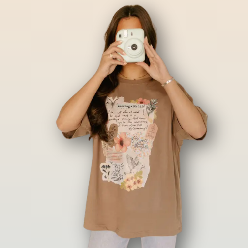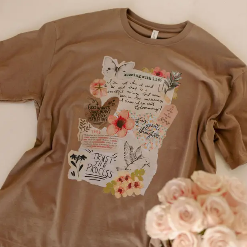 Keep faith close to your heart with the Trust the Process Graphic Tee. Part of our Scrapbook Collection, this spring-ready style combines everyday comfort with a meaningful message. Printed on a soft brown Comfort Colors tee, it’s the perfect piece to pair with denim, shorts, or layered under a cozy cardigan.