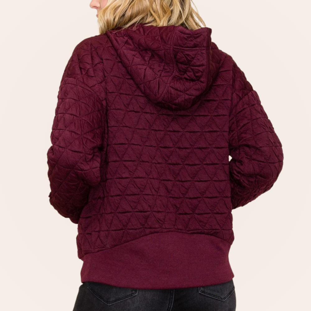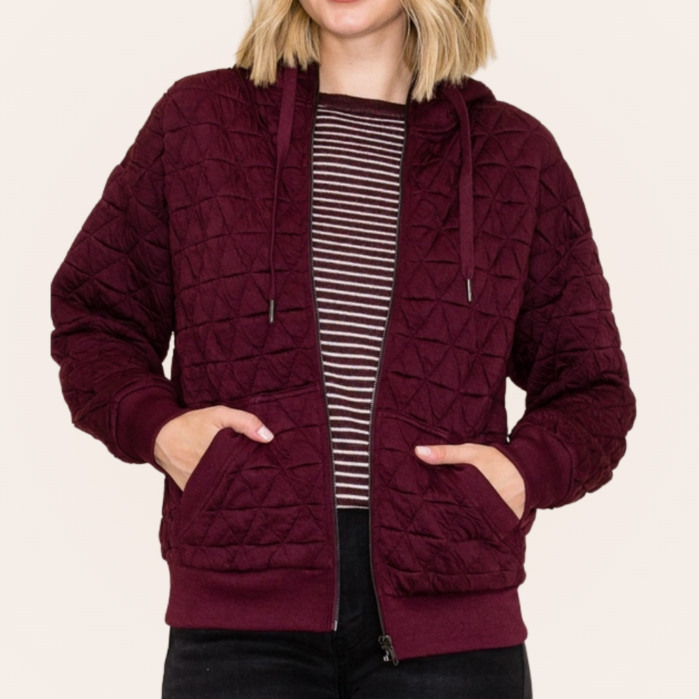 Quilted Zip-Up Hoodie Sweatshirt Jacket