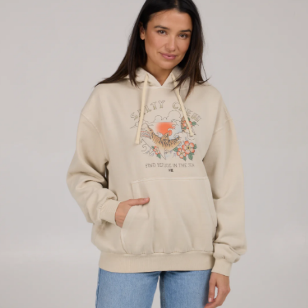 The Salty Crew Hopper Hoody brings laid-back vibes in all the right ways. With a vintage-washed finish and oversized fit, this cozy off-white hoodie is made for cool mornings, sunset strolls, and everything in between.