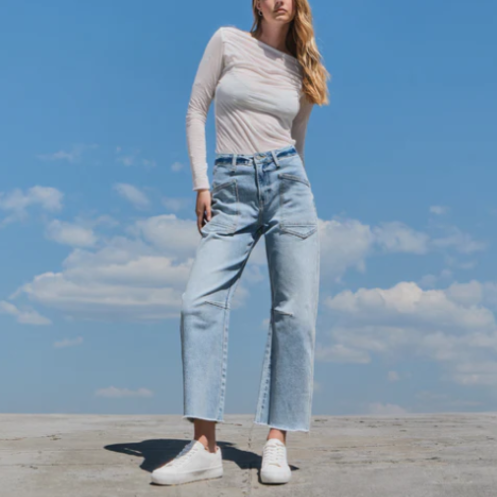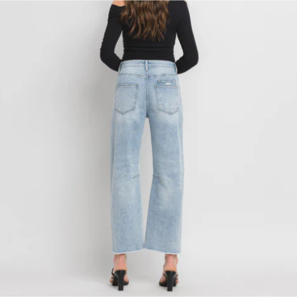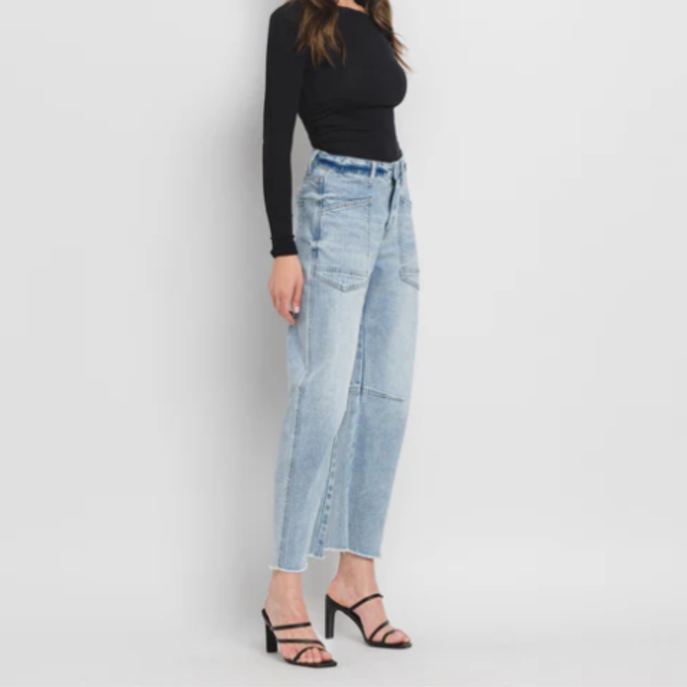 Turn everyday denim into a statement with the Heroine Super High Rise Crop Barrel Jeans. Crafted from comfort stretch denim, this pair flatters with a super high waist while giving just the right amount of flexibility. A quirky pocket detail and raw hem add a playful, undone edge, while the cropped barrel leg brings modern, laid-back style.
