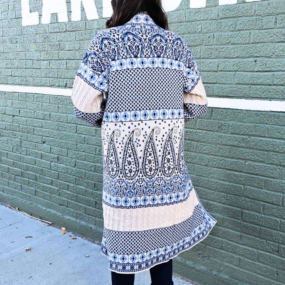 Blue & White Paisley Coatigan