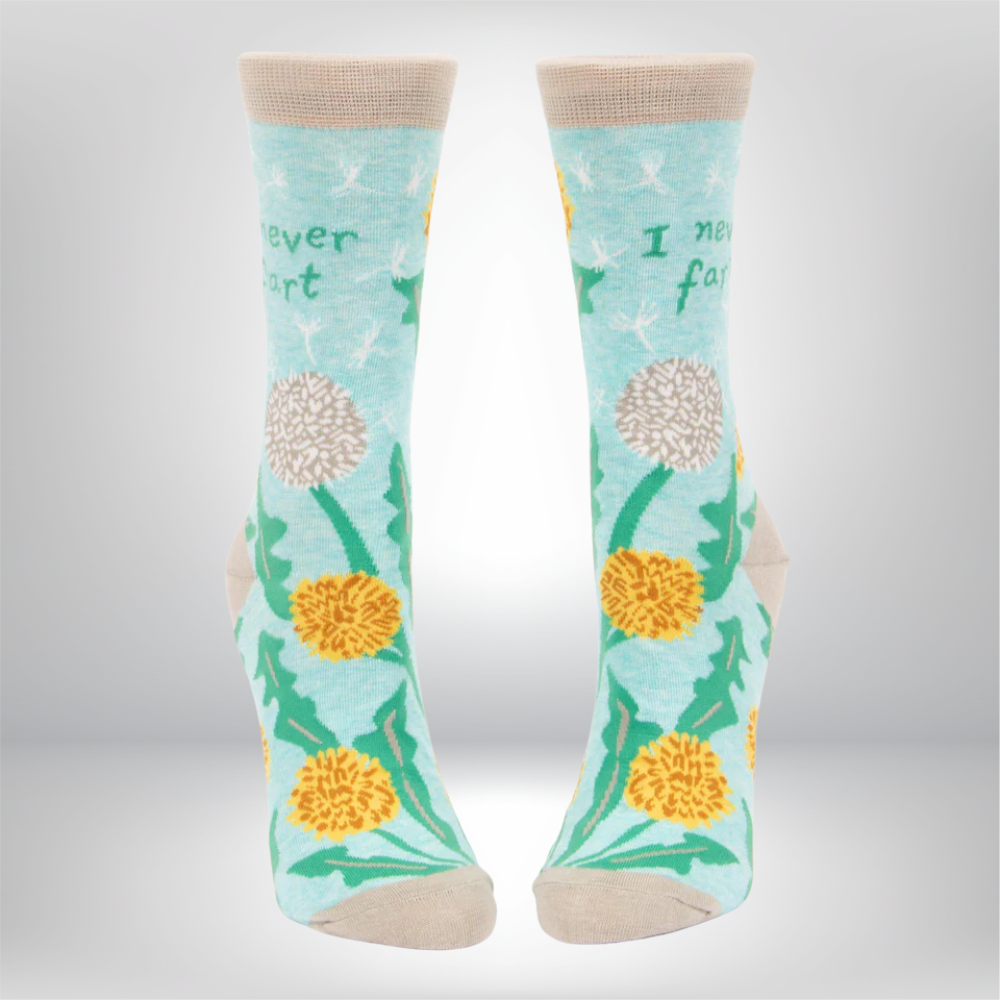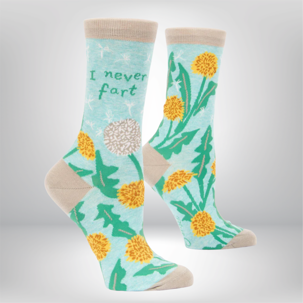 Sure, you never fart—but you might bend the truth a little when the situation calls for it. These cheeky crew socks deliver Blue Q’s signature wit with a playful design that’s as funny as it is comfortable. Soft, stretchy, and durable, they’re made for everyday wear that doesn’t take itself too seriously.