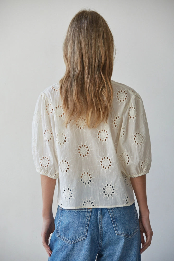 Woven Eyelet Tie Top