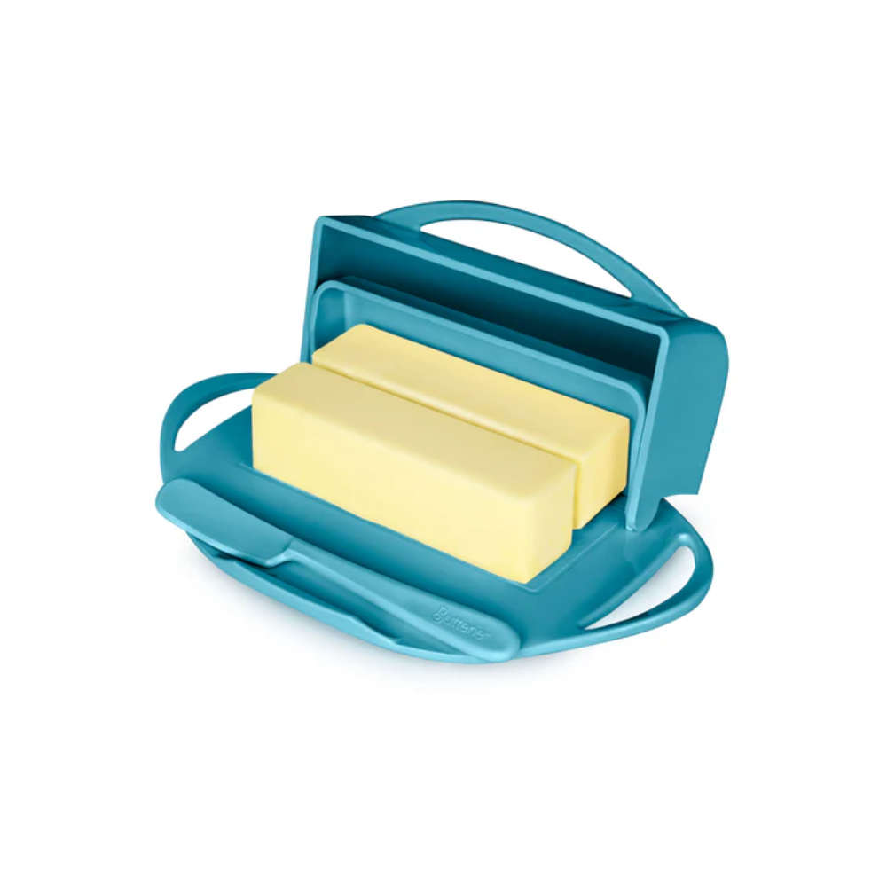 Butterie Butter Dish with Attached Flip-Top Lid - Aqua