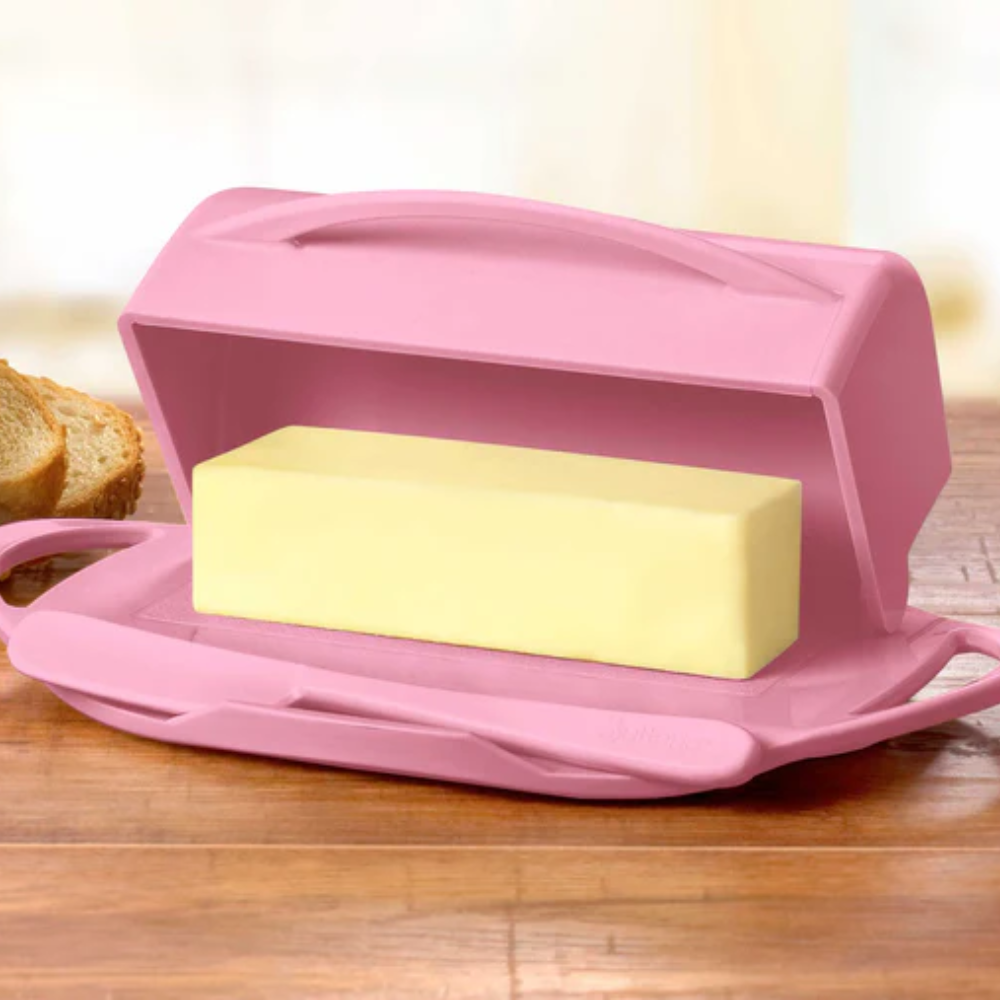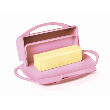 Butterie Butter Dish with Attached Flip-Top Lid – Pink