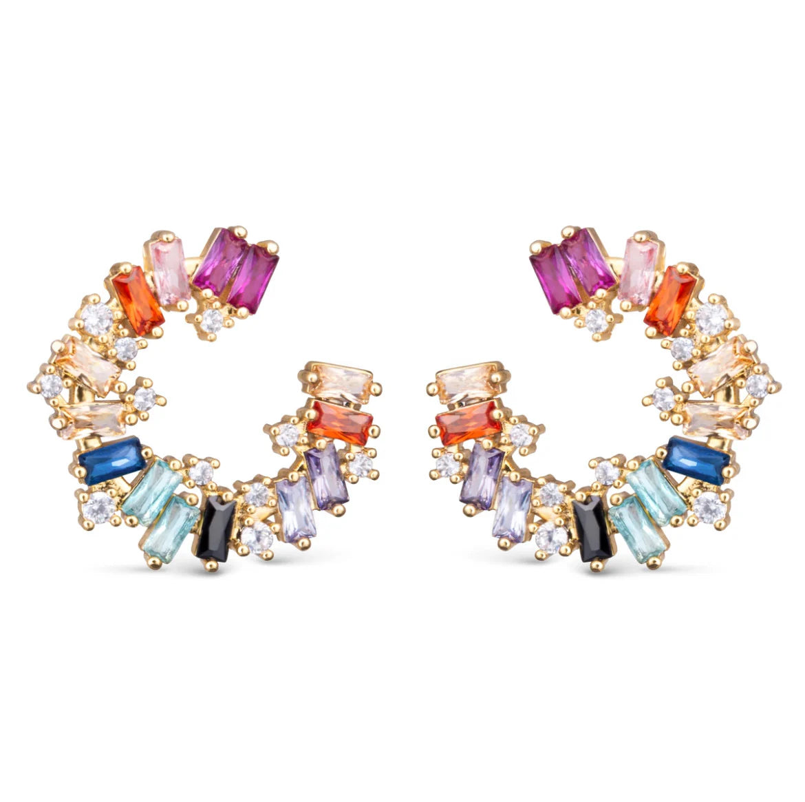 - Get ready to add some sparkle and color to your earlobes with these stud earrings - featuring an open of cubic zirconia!